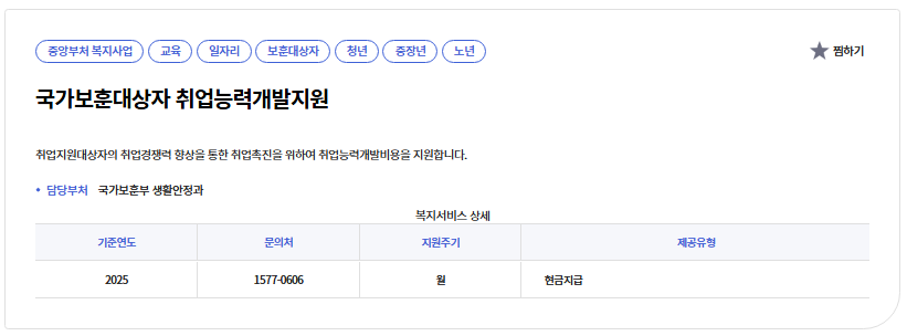 1️⃣ 국가보훈대상자 취업능력개발지원 기본 정보 및 자격 조건