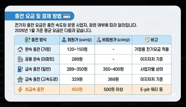| 중속 충전기 | 30~50kW | 50~60분 (0→80%) | 일부 국도 휴게소 |