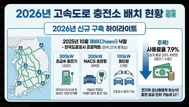 📌 2026년 설 연휴 (2/14~2/18) 특별 대비: 명절 기간 고속도로 휴게소 충전소는 평소 대비 2~3배 혼잡이 예상됩니다. 경부·서해안 주요 휴게소는 이동형 충전기 추가 배치 예정이며, 칠곡·안성·속리산 휴게소는 특히 대기가 길어질 수 있으니 앱으로 실시간 확인 필수!