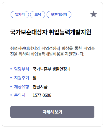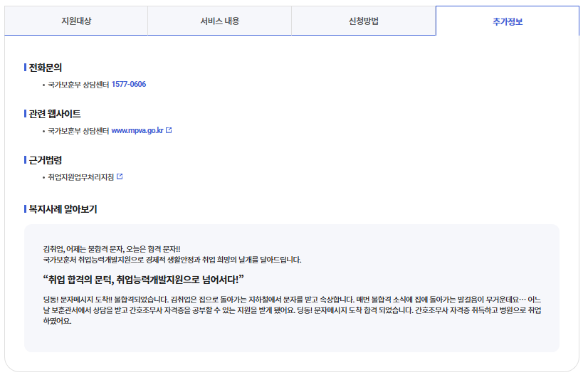 국가보훈대상자 취업능력개발지원 추가정보-출처 복지로