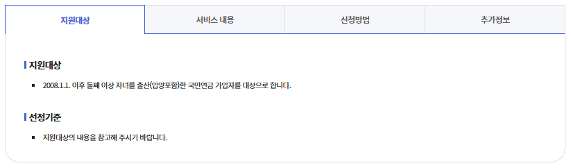 2008년 1월 1일 이후 출산한 둘째 자녀부터 적용됩니다.