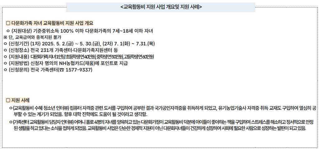 ✅ 다문화 가족 자녀 교육활동비 신청 자격부터 방법까지