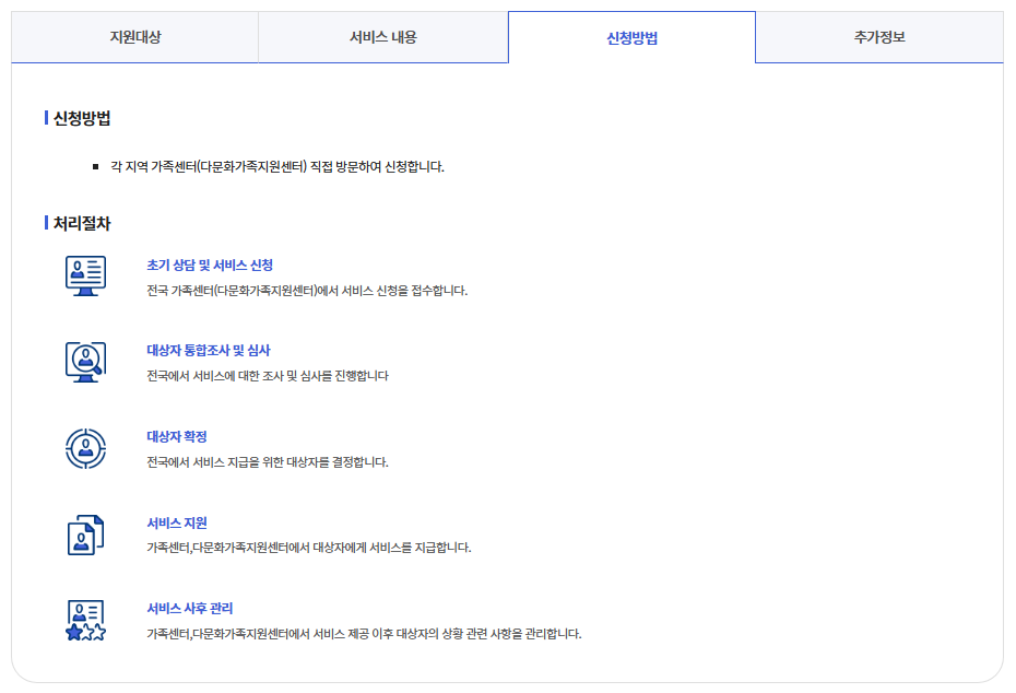 신청 방법: 해당 지역 가족센터 문의