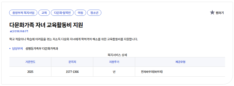 1️⃣ 다문화 가족 자녀 교육활동비 기본 정보 및 자격 조건
