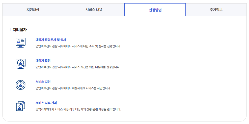 | 어떻게 신청하나요? | 여객선 터미널 매표소에서 신분증 제시 | 일부 지역은 사전 등록 필요 |