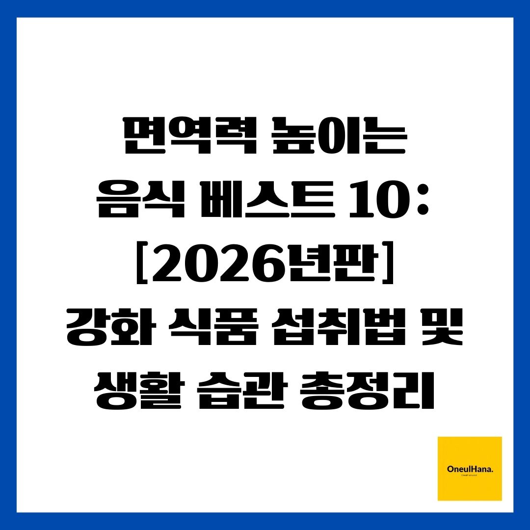 ![면역력 높이는 음식 베스트 10 [2026년판] 강화 식품 섭취법 및 생활 습관 총정리](https://blog.kakaocdn.net/dna/bcsCe3/dJMcagxE3r9/AAAAAAAAAAAAAAAAAAAAAGL6F1L3s--eXI7wcdZPuTl9k_lRE0ZpyG9YCrUf7_wD/img.webp?credential=yqXZFxpELC7KVnFOS48ylbz2pIh7yKj8&expires=1777561199&allow_ip=&allow_referer=&signature=YS0kAPRwGJK8keSs5QQEg0vQ2Sk%3D)