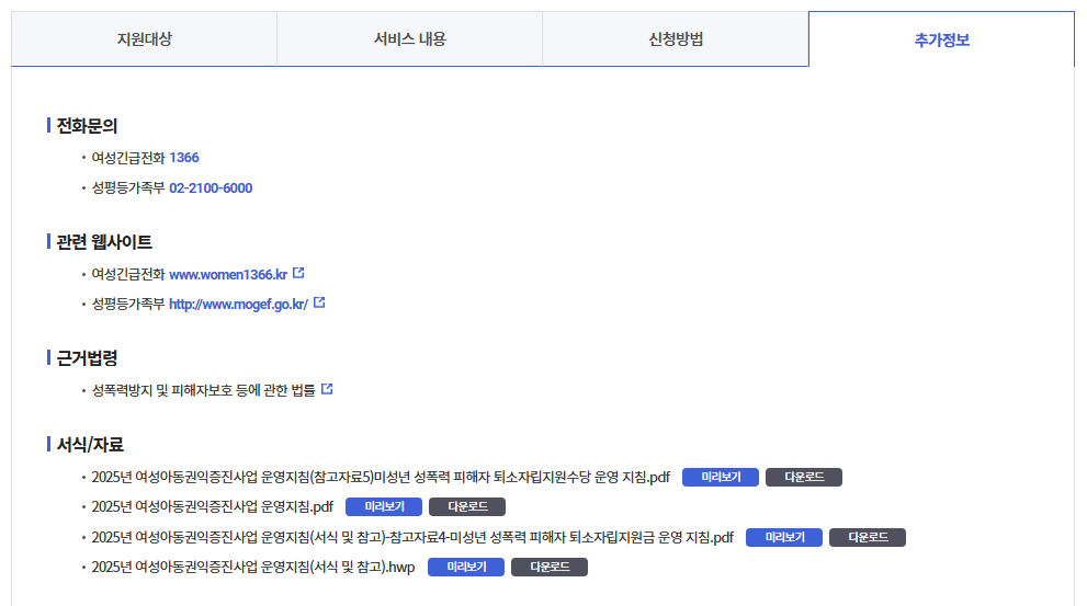 1️⃣ 성폭력 피해자 지원사업 기본 정보