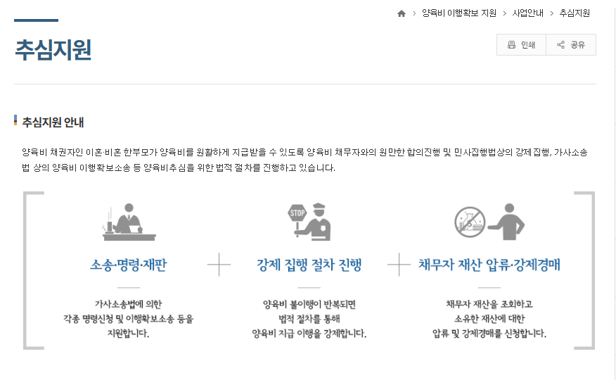 | 추심 서비스 | 미지급 양육비 전액 회수 지원 |