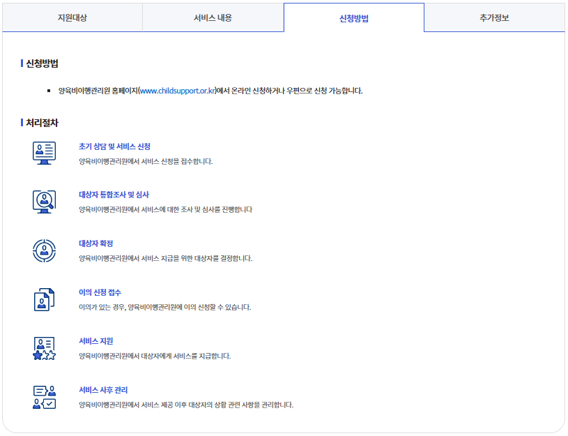 신청 방법: 양육비이행관리원 추심지원 신청