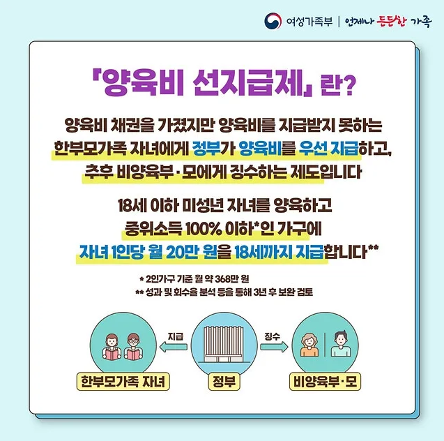 2025년 7월 1일부터 시행된 양육비 선지급제도는 양육비를 받지 못하는 한부모가족을 위한 제도입니다.