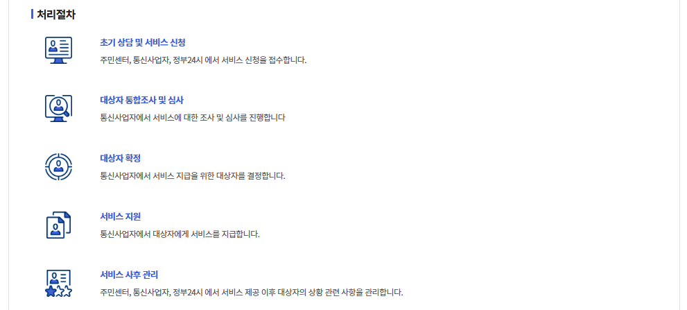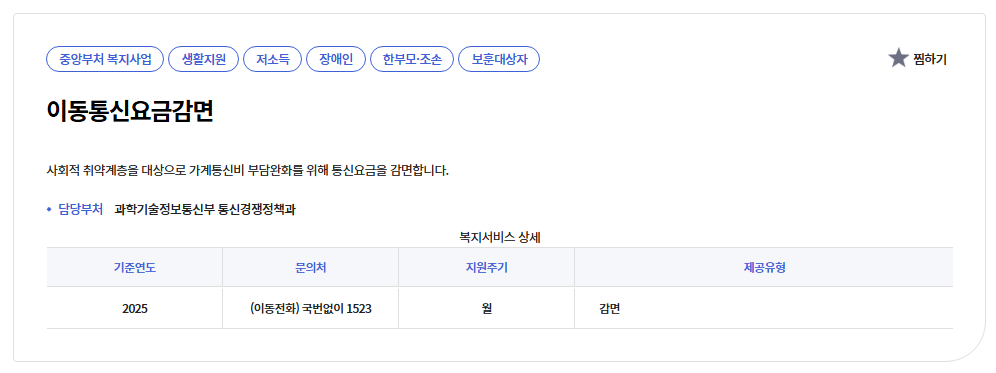 | 어디서 신청하나요? | ARS 1523, 통신사 대리점, 복지로, 정부24 | 자격 자동확인 가능 |