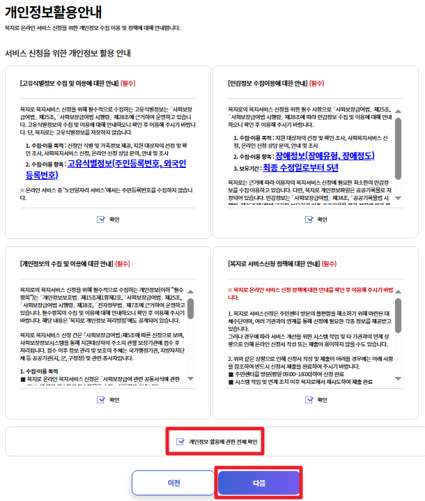 주의사항: 중복 수급 제한 서비스 확인 필요