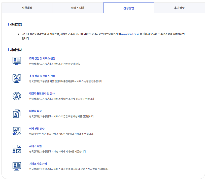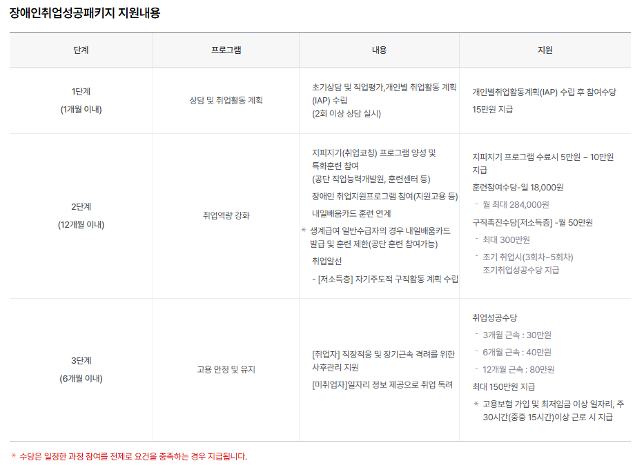 신청 조건: 구직 장애인으로 패키지 참여 자격 충족