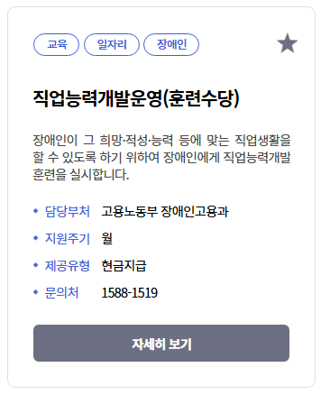 이러한 문제를 해결하기 위해 정부와 한국장애인고용공단에서 훈련수당을 지원하게 되었습니다.
