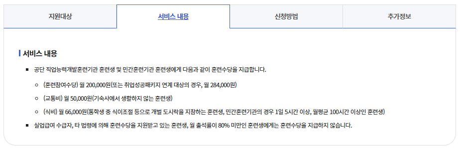 직업능력개발운영(훈련수당) 서비스내용-출처 복지로