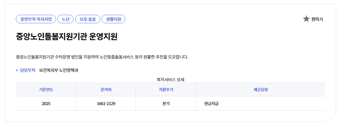 1️⃣ 중앙노인돌봄지원기관 기본 정보