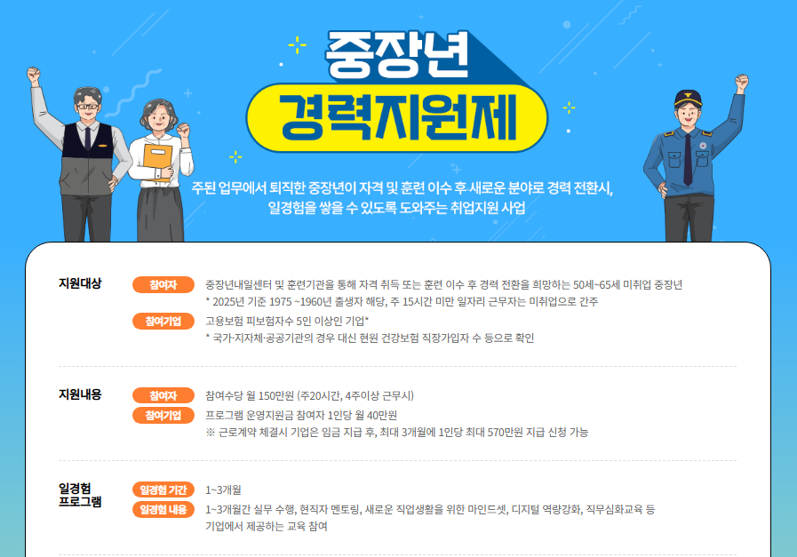 2025년 3월부터 중장년 경력지원제가 시행됩니다.
