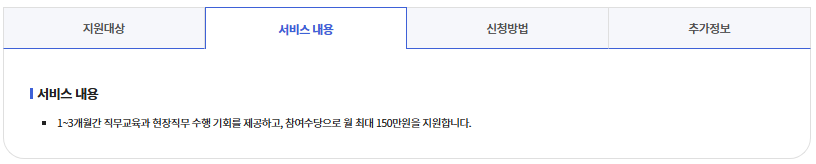 | 참여수당 | 월 최대 150만원 | 1~3개월 | 일경험 프로그램 참여 시 |