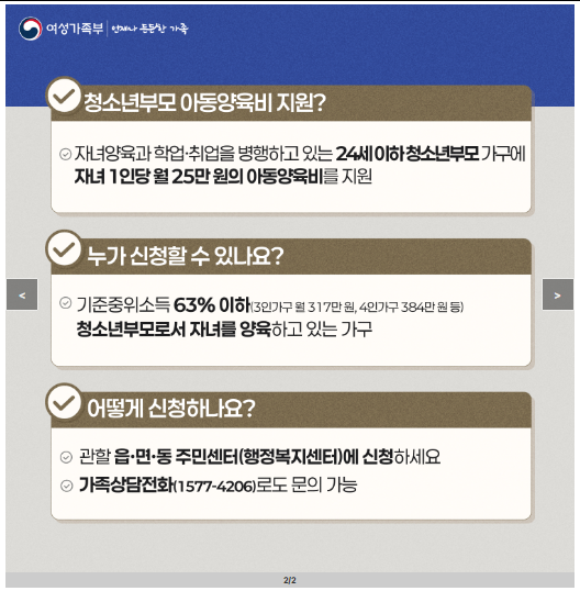 | 청소년부모 아동양육비 지원 한눈에 보기 | ||