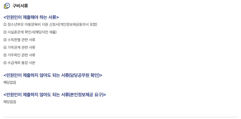✅ 청소년부모 아동양육비 지원신청서: 행정복지센터에서 받거나 정부24에서 다운로드