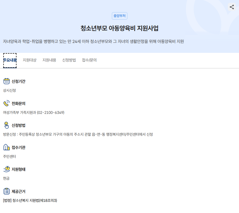 1️⃣ 청소년부모 아동양육비 지원 기본 정보 및 자격 조건