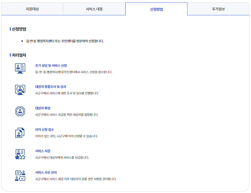 | 어디서 신청하나요? | 주소지 읍면동 행정복지센터 | 방문 신청만 가능 |