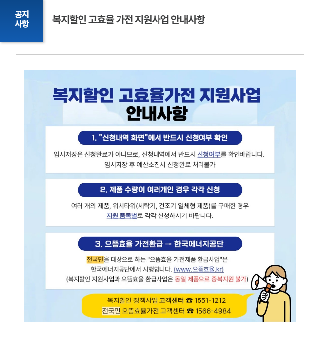 취약계층의 고효율 가전 구매를 지원하고 있습니다.