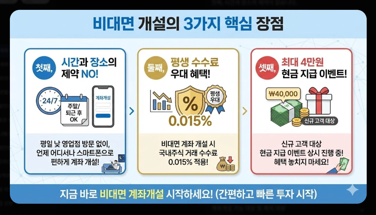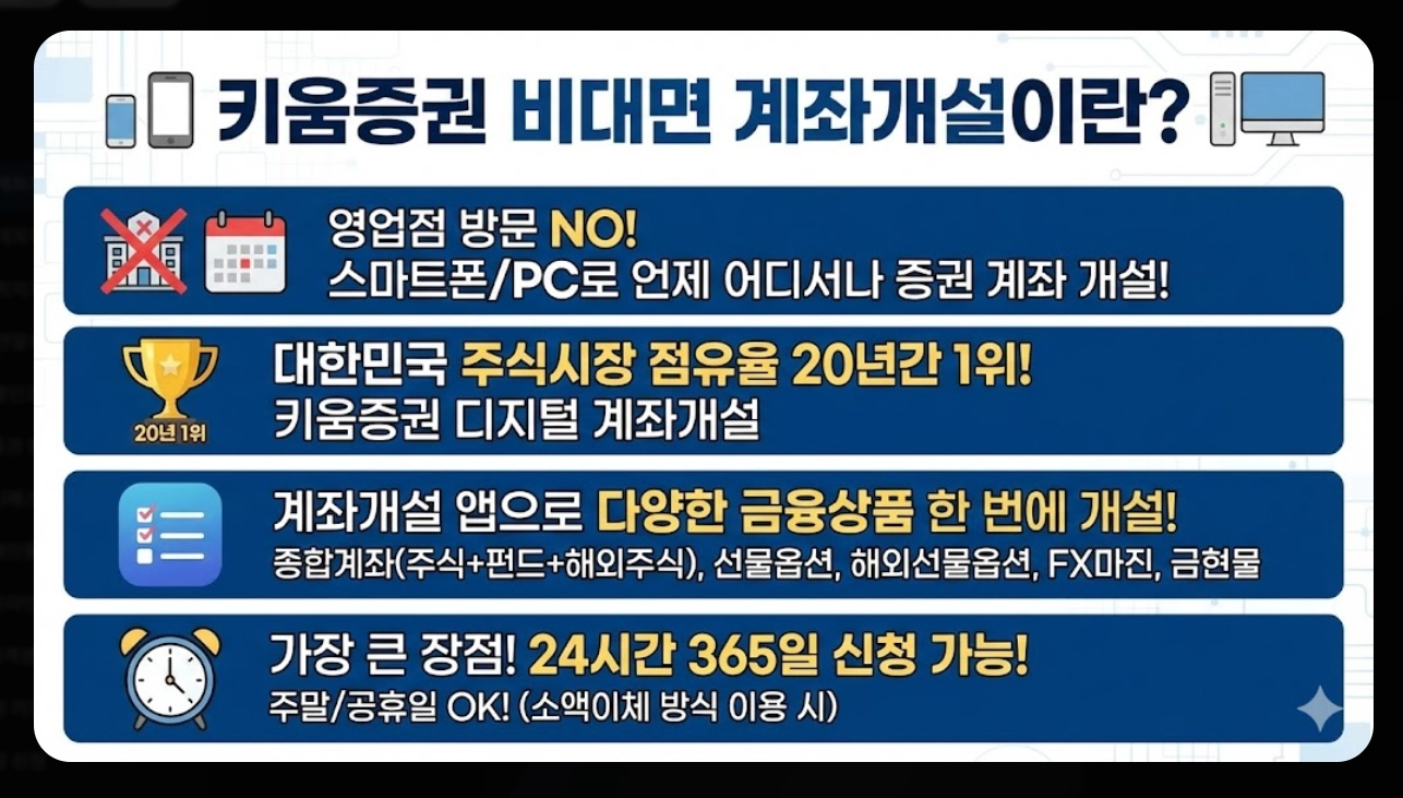 | 키움증권 계좌개설: 비대면 5분 완성 가이드 및 최대 4만원 혜택 받는 법 (0) | 2025.12.23 |