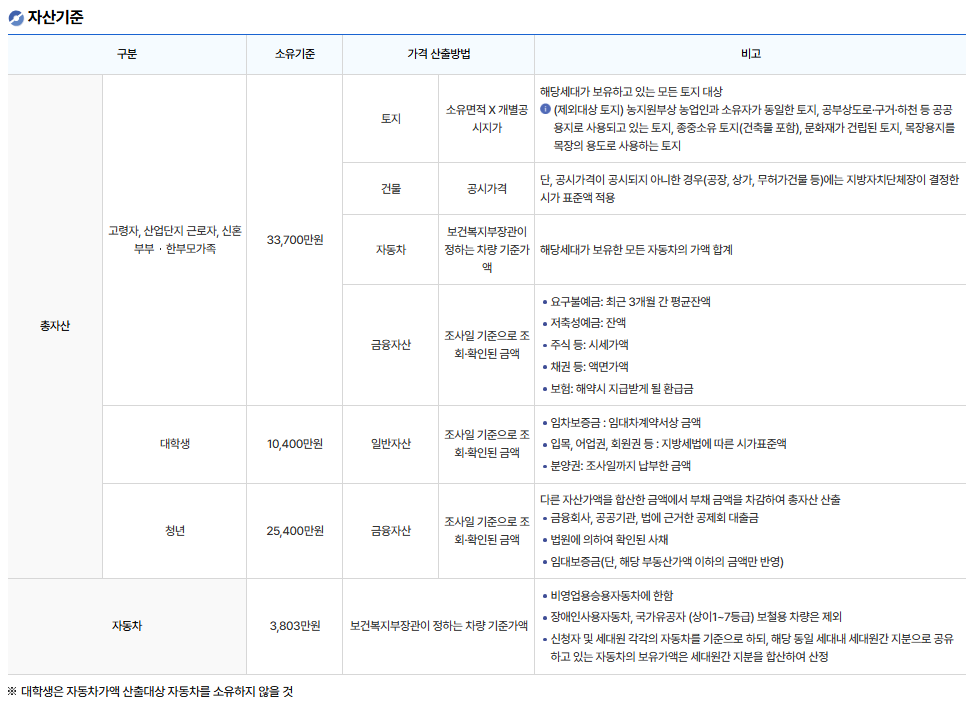 ✅ 놓치기 쉬운 소득·자산 기준 확인