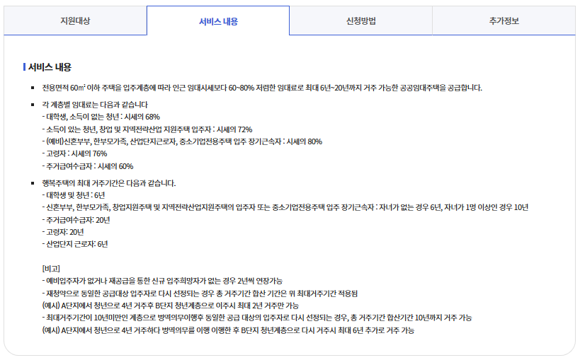 얼마나 살 수 있나요? 기본 2년, 최대 10~20년 계층별로 거주 기간 상이