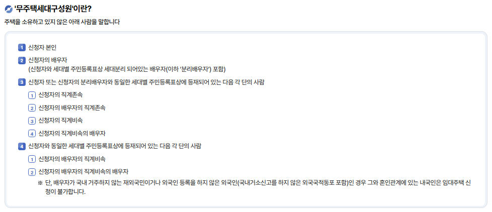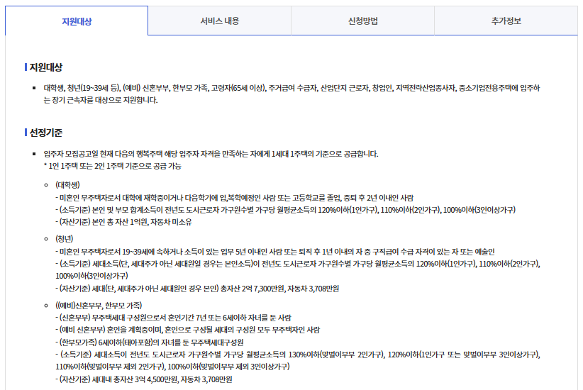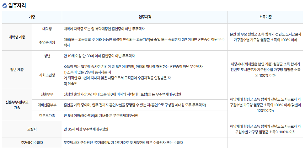 누가 신청할 수 있나요? 대학생, 청년, 신혼부부, 고령자, 주거급여수급자 무주택세대구성원이어야 함