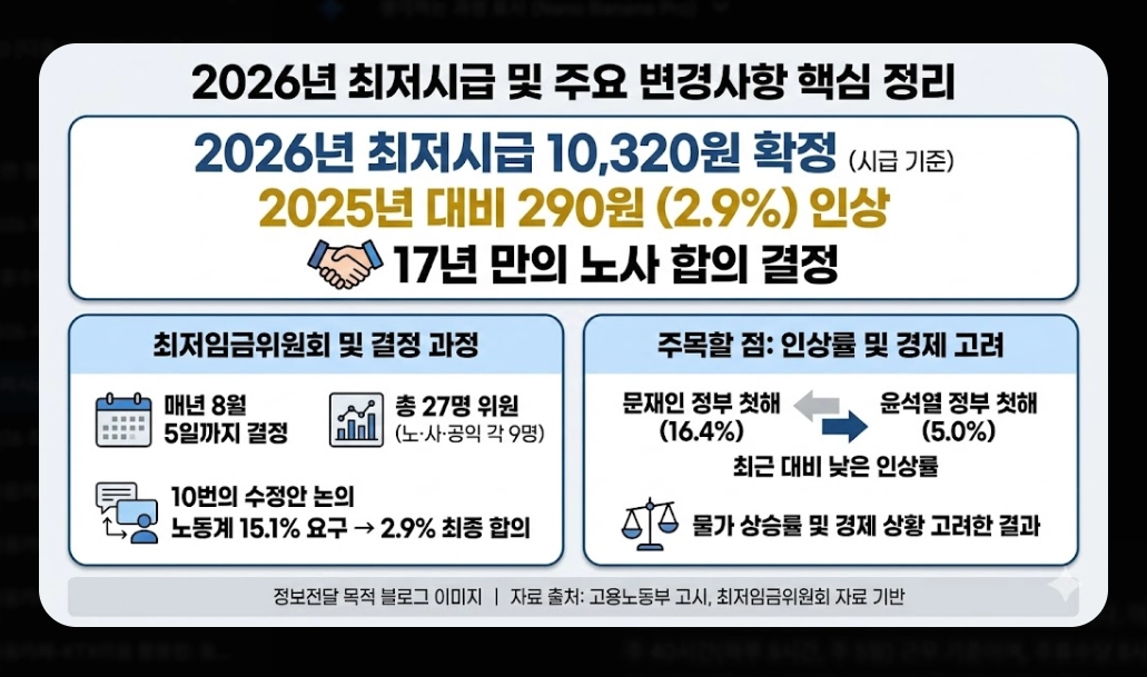 ✅ 2026년 최저시급 10,320원으로 확정 (2.9% 인상)